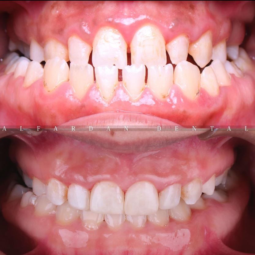 A case of sever crowding with traumatic bite to the palate , treated by Dr.Abbas Alfardan ( the smile stylist)Creating beautiful smiles is our aim at alfardan.